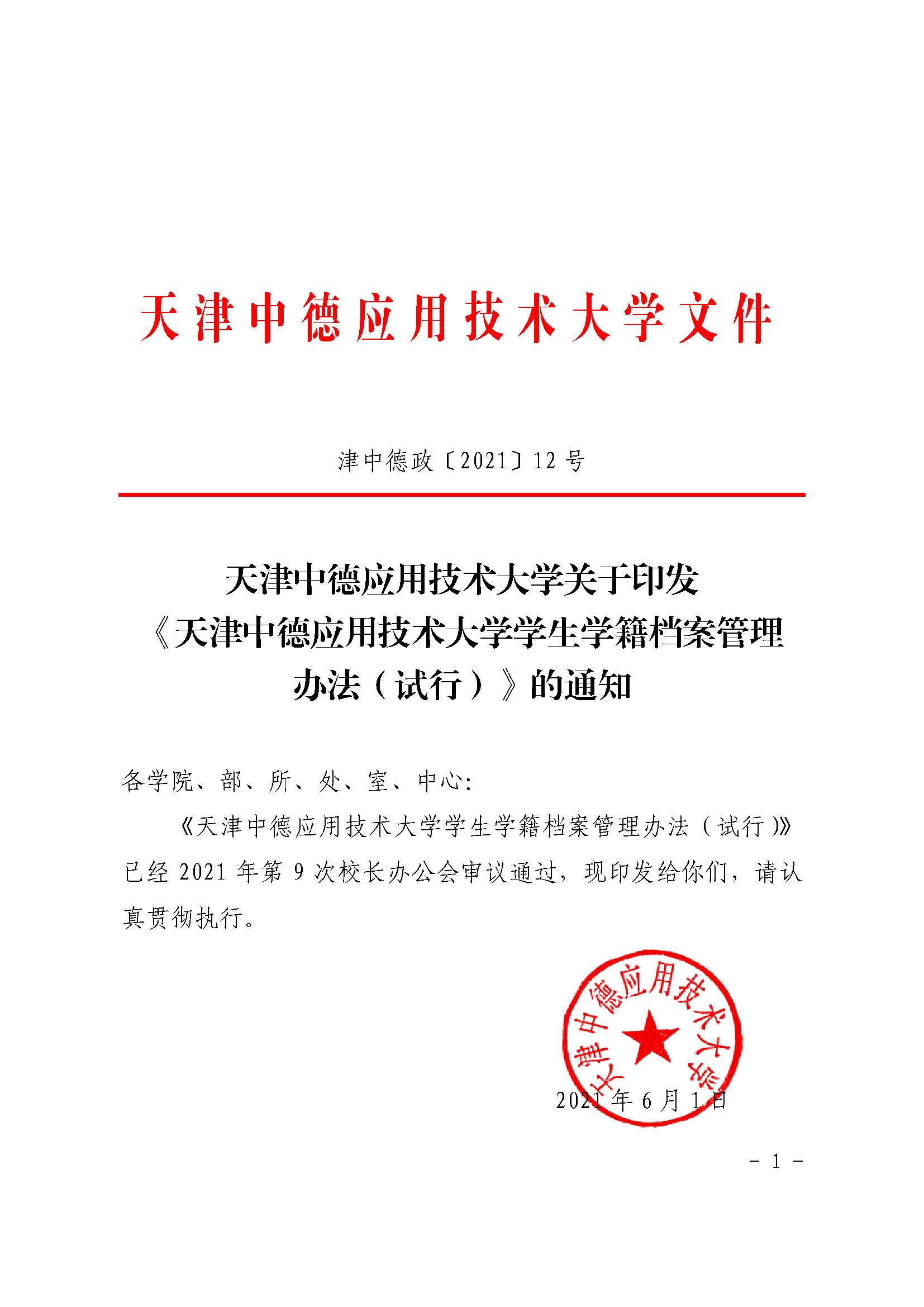 来源:天津中德应用技术大学关于印发《天津中德应用技术大学学生学籍档案管理办法(试行)》的通知